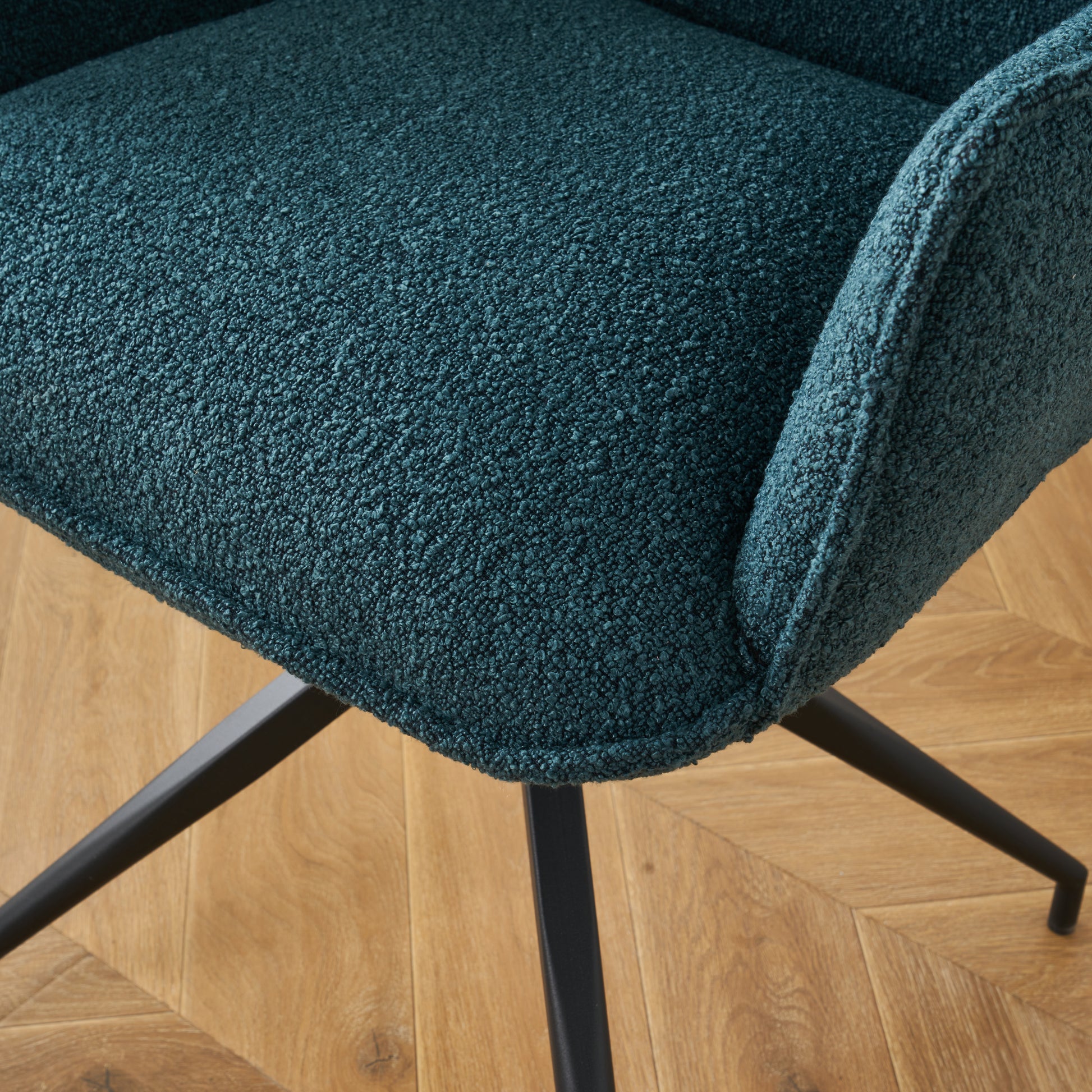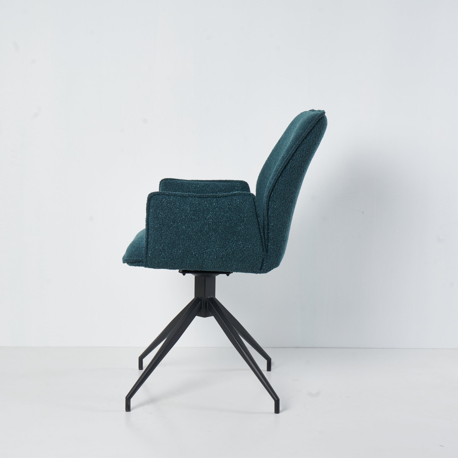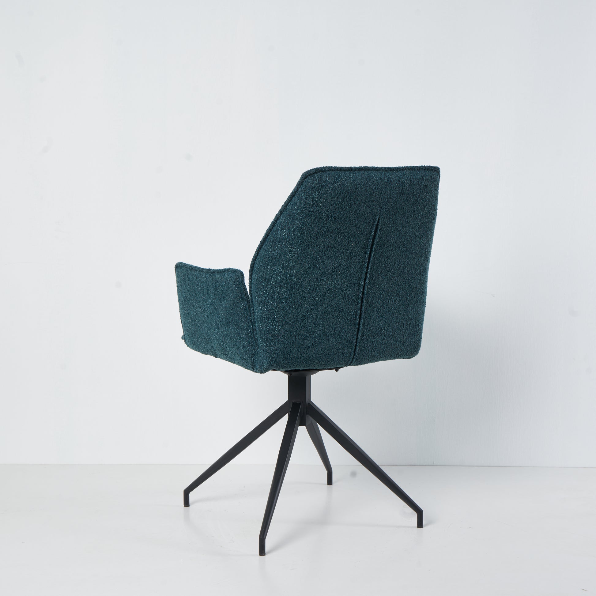 Eenvoud en elegantie elkaar ontmoeten in de Bella eetkamerstoel. De zachte boucléstof in de kleur Smaragd groen geeft Bella een warme en uitnodigende uitstraling, terwijl de minimalistische zwarte poten zorgen voor een strak en modern contrast. Dankzij het 360 graden draaibare onderstel biedt Bella niet alleen een extra dosis flexibiliteit, maar ook een optimaal comfort. Ideaal voor gezellige diners of een ontspannen moment aan de tafel. Bella is de perfecte keuze voor wie een praktische verfijning en dynamiek aan zijn interieur wil toevoegen.