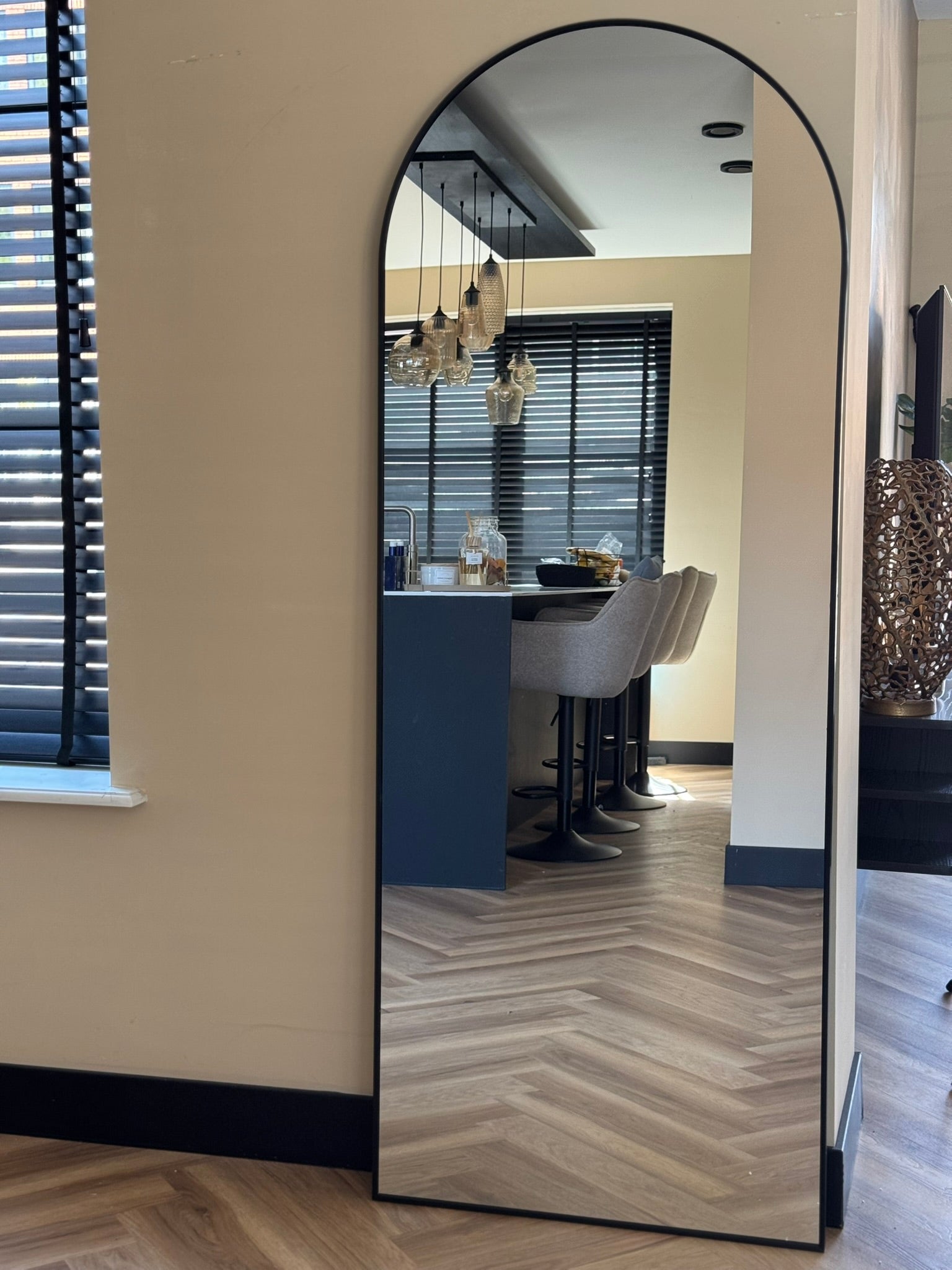 Zoek je een grote wandspiegel in mat zwart, een spiegel met ronding , of een staande spiegel industrieel? Dan is de XL Spiegel Royale precies wat je nodig hebt.